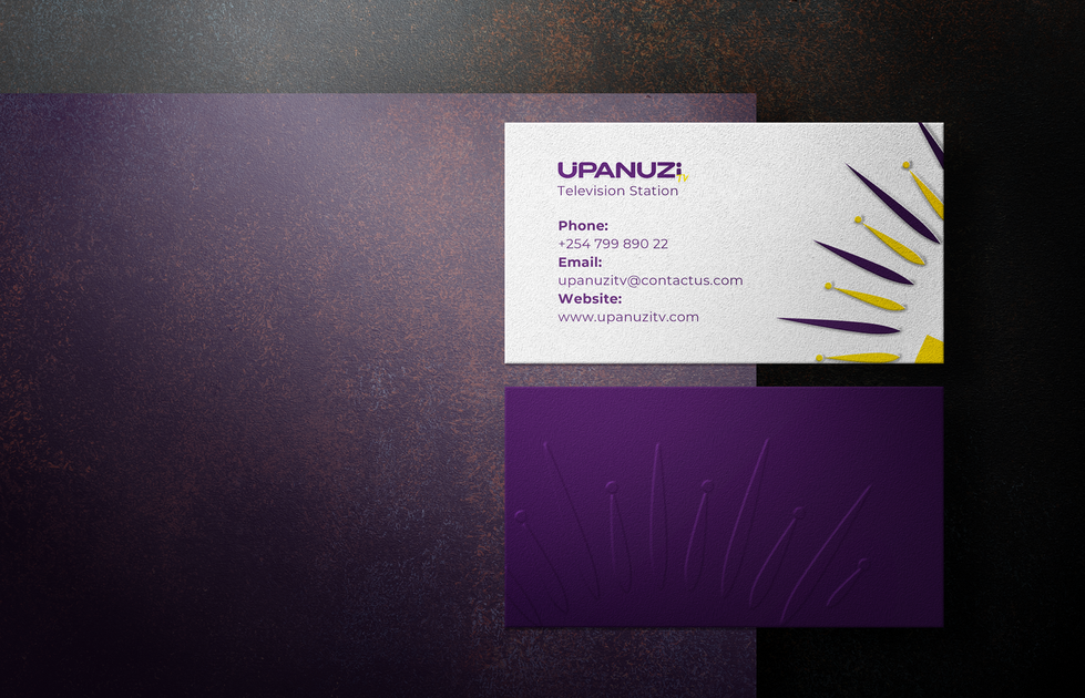 This project showcases various branding components, including logos, color palettes, and embossed cards with unique designs. It also features business cards with custom logo designs for Eleven Events, Upanuzi Television Station, digitals by nj, and Christ Embassy Canada.